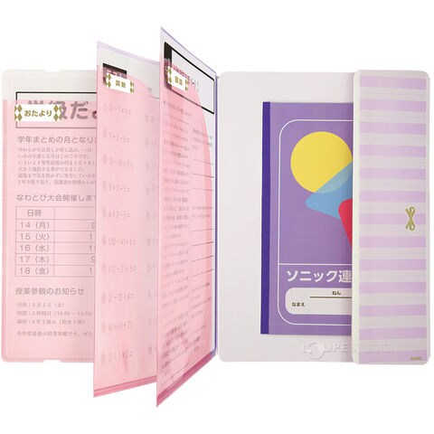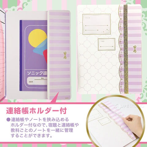 - 連絡帳やノートを挟み込めるホルダーが付いているので、宿題と連絡帳や、教科ごとのノートを一緒に管理する事ができます。