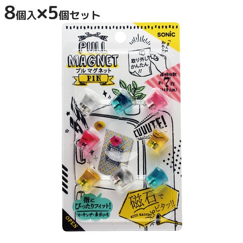 マグネット プルマグネット ピンタイプ 色込 8個入×5個セット 磁石 オフィス 学校 事務用品 会議 ミーティング
