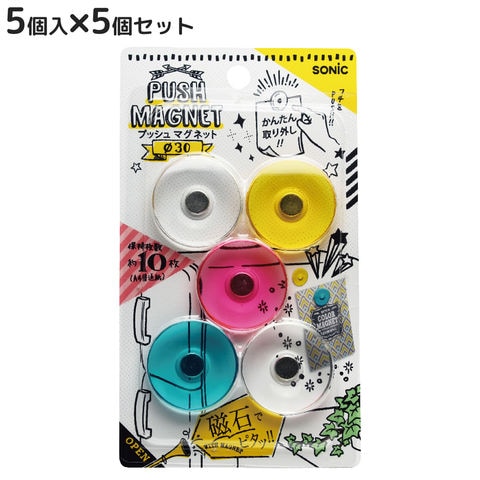マグネット プッシュマグネット Φ30mm 色込 5個入×5個セット 磁石 オフィス 学校 事務用品 会議 ミーティング