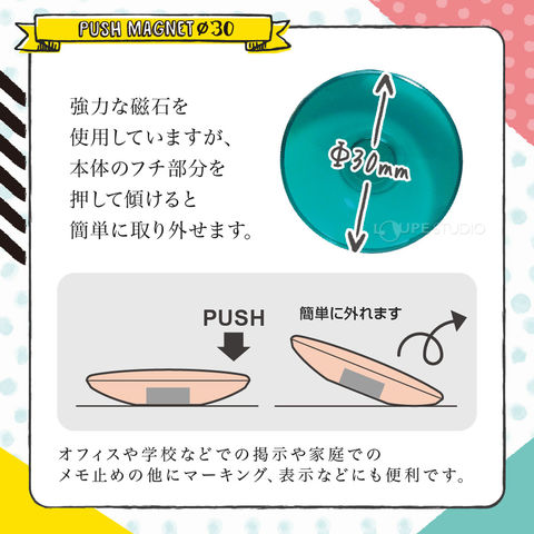 マグネット プッシュマグネット Φ30mm 色込 5個入×5個セット 磁石 オフィス 学校 事務用品 会議 ミーティングスペック