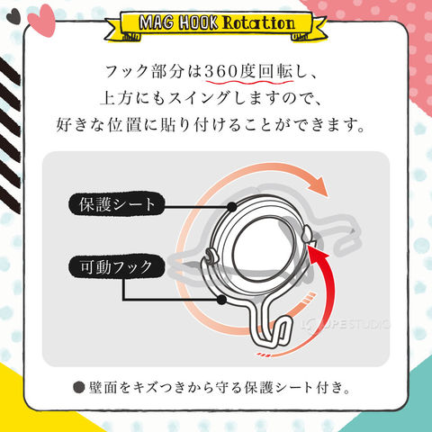 - 強力マグネットフックでキッチンやデスク、ロッカー等のスチール壁面を有効利用できます。
