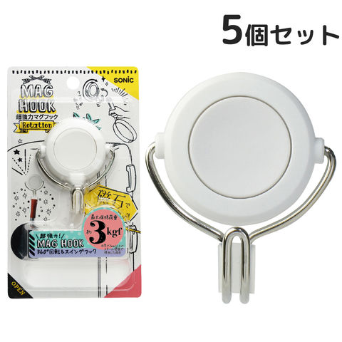 フック マグネット 超強力マグフック 3kg 回転フック 白 5個セット 鍵 オフィス 学校 自宅 生活雑貨