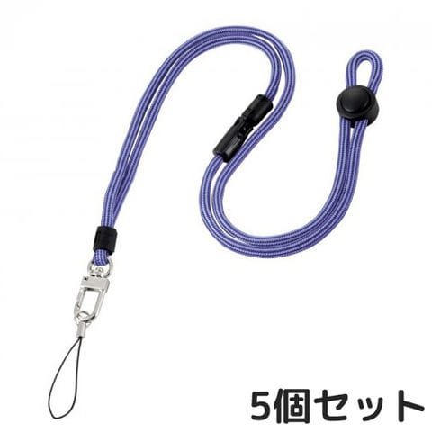 ネックストラップ 丸ひも ストラップ フック付 青 5個セット 首掛け 落下防止 スマホ 社員証 IDカード おしゃれ かわいい