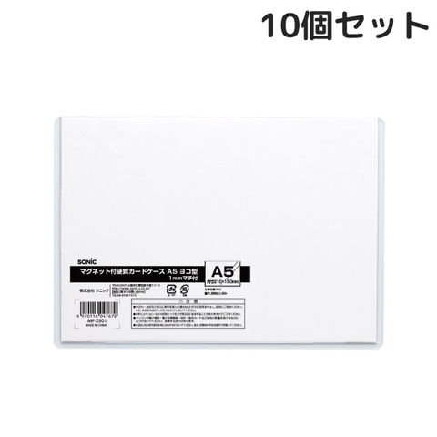 カードケース マグネット付硬質カードケース A5 横型 1mmマチ付 10個セット 磁石 オフィス 学校 工場 掲示
