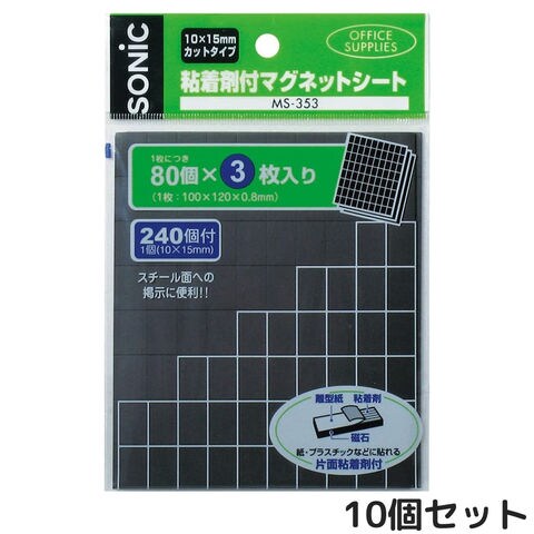 粘着剤付マグネットシート 10×15 カットタイプ 3枚入り×10個セット 磁石 オフィス 学校 事務用品 会議 ホワイトボード
