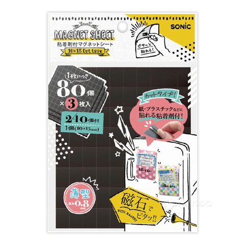 粘着剤付マグネットシート 10×15 薄型 カットタイプ 3枚入×5個セット 磁石 オフィス 学校 事務用品 会議 ホワイトボード