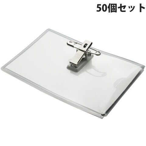 名札 ネームプレート 名刺型名札 大 ソフトタイプ 両用 透明 50個セット 名刺 クリップ 安全ピン 穴が開かない オフィス 会社 学校