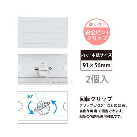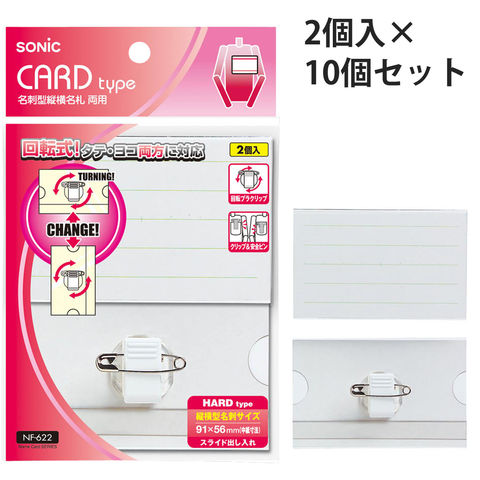 名札ケース クリップ 名刺型縦横名札 両用 2個入×10個セット 安全ピン オフィス 会社 店舗 社員証 IDカードスペック