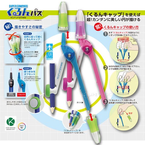 「くるんキャップ」搭載でこれまでの難しかったコンパスを一新!にぎって・くるんと・まわすだけ!革新的な円の描きやすさを実現