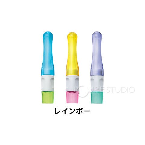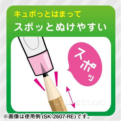 - グリップはやわらかゴムでホールドするから、鉛筆がぬけにくいのに着脱がスムーズ。鉛筆にキズがつきにくい!