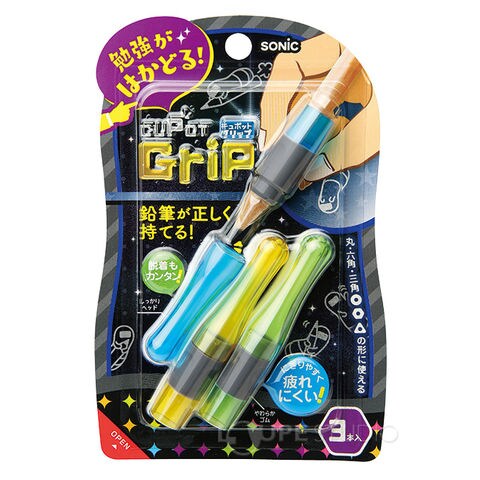 鉛筆が正しく持てるキュポットグリップ。キャップ×グリップこれ1本!勉強がはかどる!にぎりやすく疲れにくい。ぬけ、ワレ、飛び出し キャップのお困りもトータルに解決