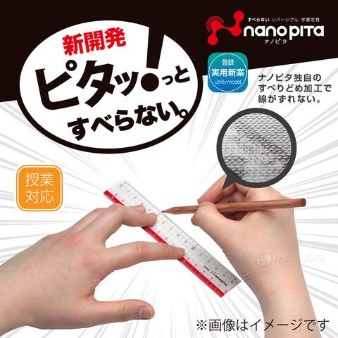 すべらないリバーシブル定規、ナノピタ。ナノピタだから、すべらない。