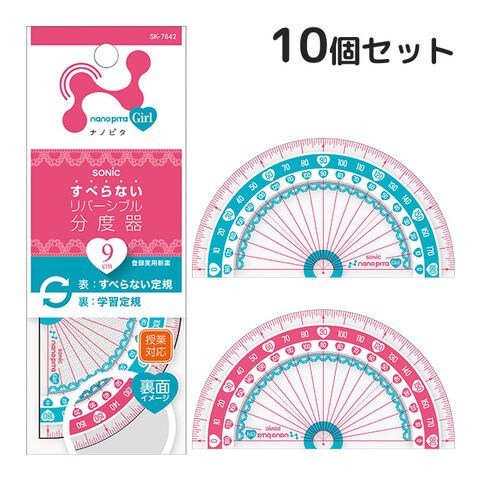 分度器 ナノピタ ガール 分度器 9cm リバーシブル 10個セット 文房具 事務用品 シンプル 小学生 学校 女の子スペック