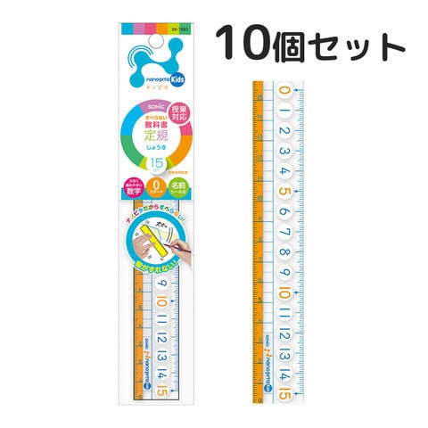 定規 ナノピタ キッズ 直線定規 15cm 10個セット 文房具 シンプル 子供 小学生 学校 すべりどめスペック