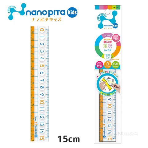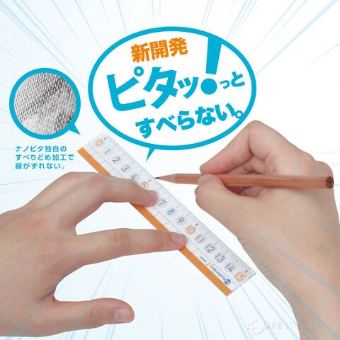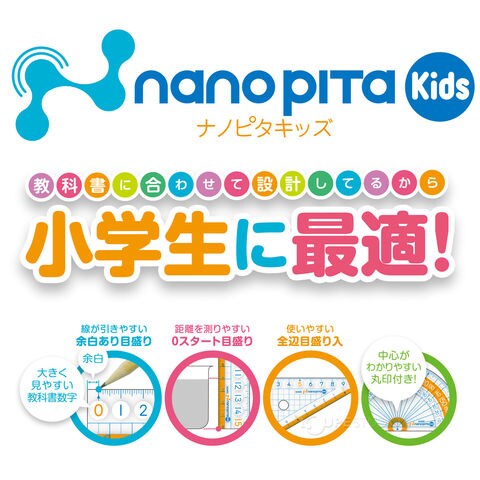 子供が使うことを考えたキッズタイプのナノピタ定規。ナノピタだから、すべらない。
