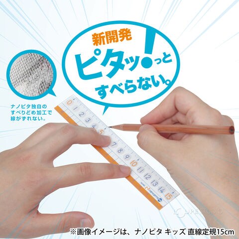 子供が使うことを考えたキッズタイプのナノピタ定規。ナノピタだから、すべらない。