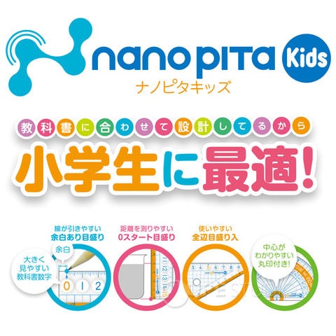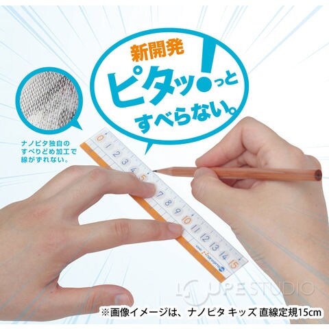 子供が使うことを考えたキッズタイプのナノピタ定規。ナノピタだから、すべらない。