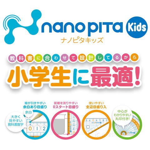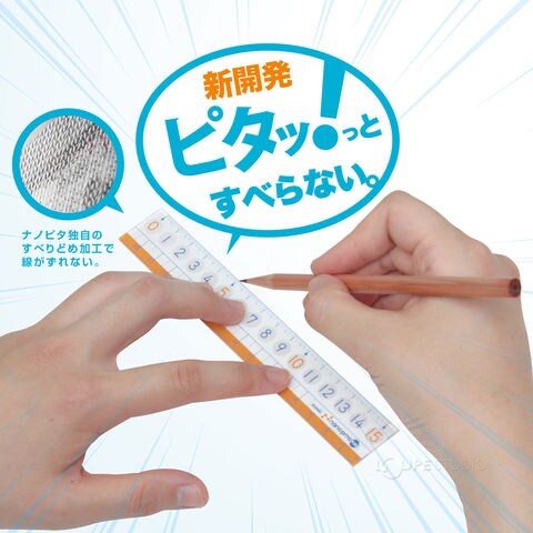 子供が使うことを考えたキッズタイプのナノピタ定規。ナノピタだから、すべらない。