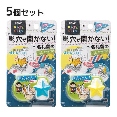 名札 安全ピン キッズクリップ 星 服に穴が開かない名札留め 5個セット クリップ 子供 防犯 男の子 女の子