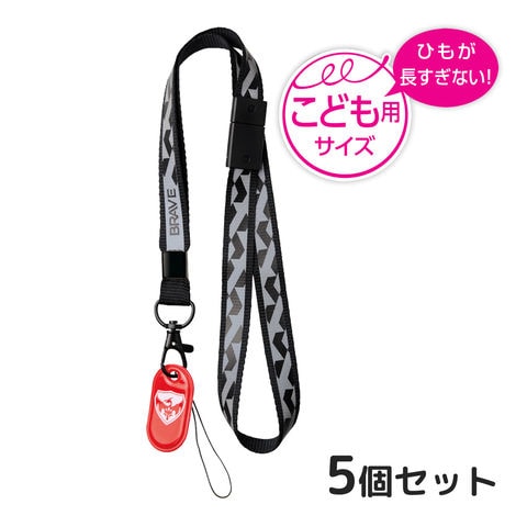 ネックストラップ ブレイブ ストラップ 安全反射付 ブラック 5個セット 鍵 パスケース 子供 防犯 夜間 通学 塾 習い事