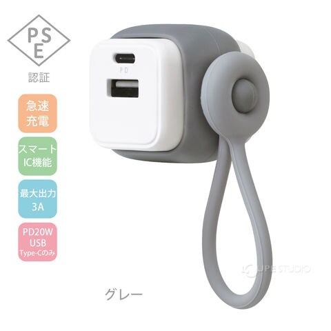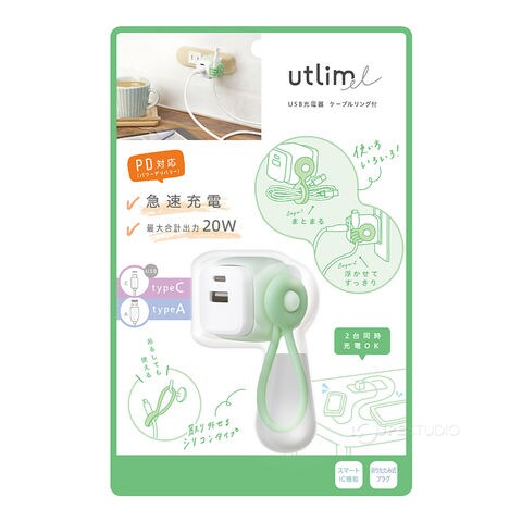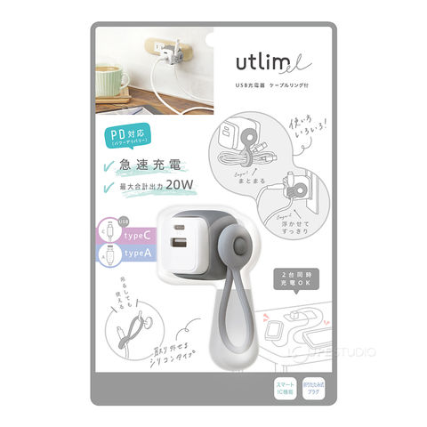 USB充電器 タイプC タイプA スマホ タブレット PC コンパクト おしゃれ 持ち運び 充電 仕事 勉強 USB-A&C ケーブルリング付 スマートIC ユートリムエル ソニック sonic