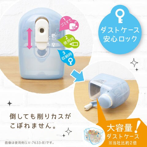 - ダストケース安心ロック機構で、倒れても削りカスがこぼれません♪
