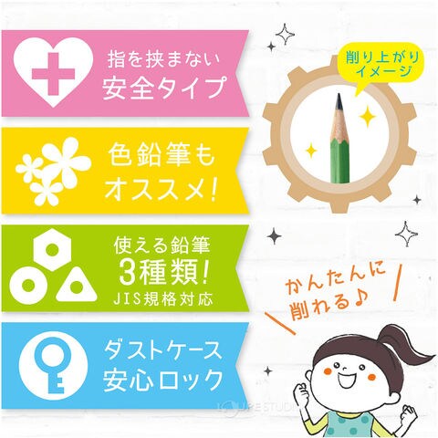 - 鉛筆を差すだけだから、指を挟まない安全タイプ