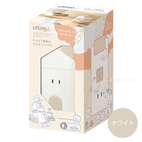 コンセント USB おしゃれ かわいい 携帯 スマホ PC 充電 仕事 勉強 えんとつ屋根のコンセントハウス 2m AC6個口 USB-A×3 キャップ付き ソニック sonicスペック
