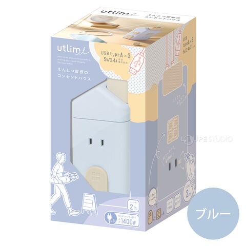 コンセント USB おしゃれ かわいい 携帯 スマホ PC 充電 仕事 勉強 えんとつ屋根のコンセントハウス 2m AC6個口 USB-A×3 キャップ付き ソニック sonic