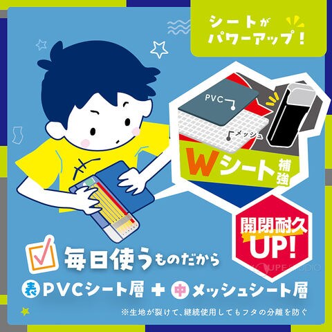 うかサポ えんぴつチェック両面筆入 筆箱 ペンケース 小学生 男の子 Wシート補強 ブレイブ おしゃれ かっこいい 文具 文房具 筆記用具 ソニック sonicスペック