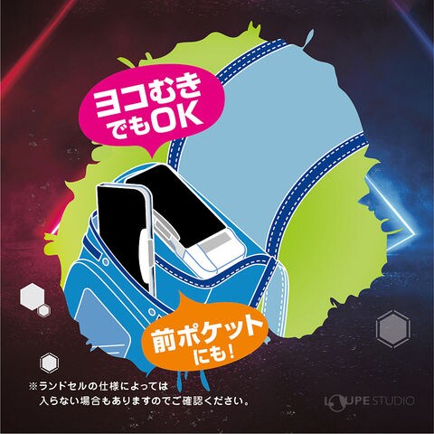 - ランドセルへは横向きにも、前ポケットにも、空いたスペースに入ります。