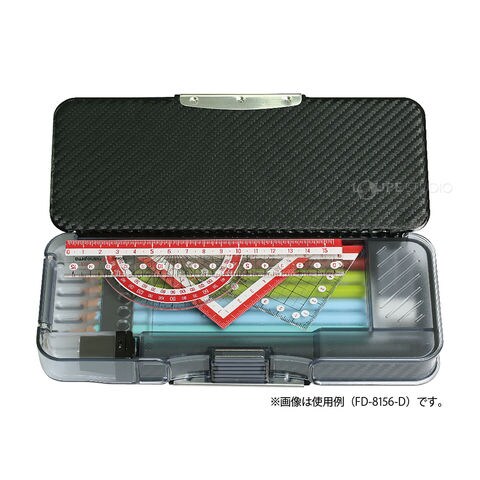 - 直線定規15cm、三角定規13cm、分度器12cmといった大き目サイズの三角定規も収納可能。