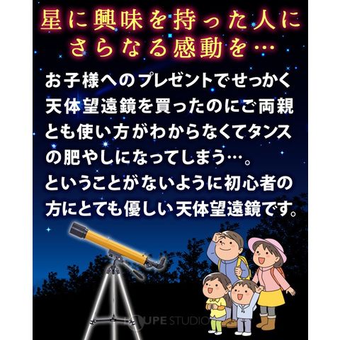 | その他付属品 | 天頂ミラー 三脚 オリジナル天体ガイドブック スマホアダプター【スマホ横幅サイズ:55~98mmまで対応】 | |