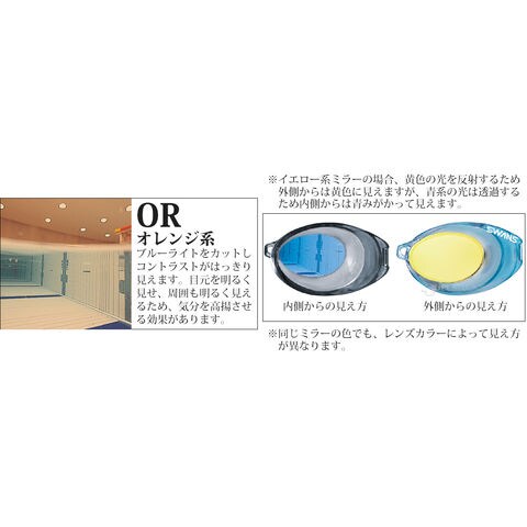 - ■カーブ形状のレンズ面になることで、流水抵抗の低減を実現。また、ゴーグル側面までレンズが広がり、より広い視界を確保します。