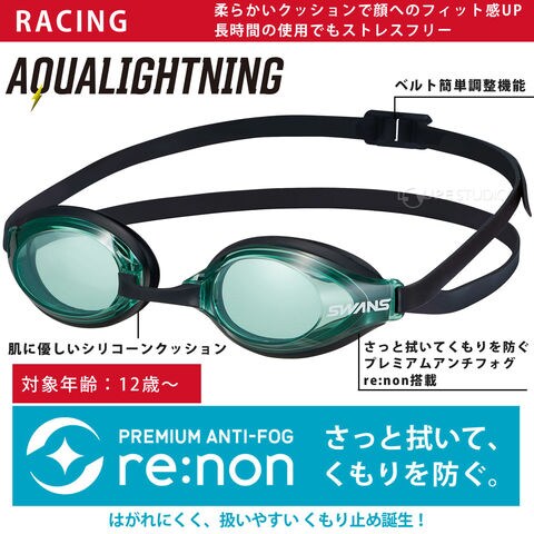 レーシング シリコーンクッション スイミングゴーグル ゴーグル 水泳 水中メガネ AQUALIGHTNING 日本製 競泳 スイムゴーグル 水中ゴーグル 新防曇リノン renon 曇り止め スワンズ SWANSスペック