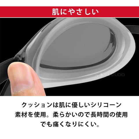 - スイマーの方ならついついしてしまいがちな、無意識動作ともいえる「レンズの内側を指でこする行為」、これを繰り返しても、リノン(新防曇)は剥がれにくく、くもり止めの耐久性も今までよりも飛躍的に向上しています。また、使用していく中でレンズがくもり始めても、指で軽くなでることで、くもり止め効果が回復します。