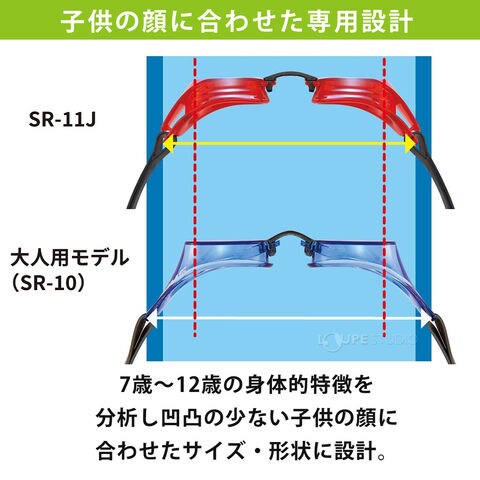 ジュニア選手のために設計・開発されたレーシングモデル。6歳~12歳の身体的特徴を分析し、ジュニアにピッタリのレンズ形状を作り上げました。