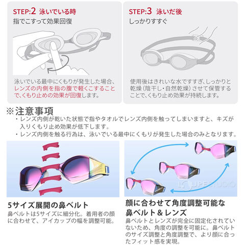 | 素材 | アイカップ/ポリカーボネート、クッション/エラストマー、ベルトアジャスター/ポリカーボネート、鼻ベルト/エラストマー、ベルト/エラストマー |