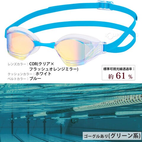 | VEGA-Mre α COR | レンズカラー/クリア×フラッシュオレンジミラー クッションカラー/ホワイト ベルトカラー/ブルー 可視光線透過率/61% |
