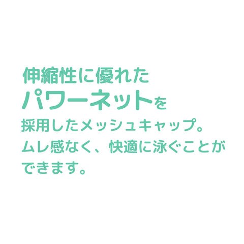 伸縮性に優れたパワーネットを採用したメッシュキャップ。ムレ感なく、快適に泳ぐことができます。
