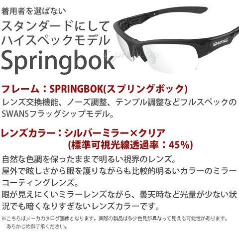サングラス ミラーレンズ シルバーミラー×クリア 透明 スポーツ メンズ レディース SPRINGBOK F-SPB フレーム+L-SPB-0712 CL/SL おすすめ 人気 SWANS スワンズスペック