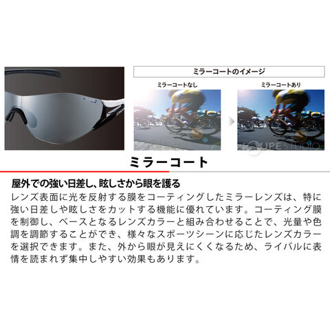 - レンズ表面に施されたミラー加工により、眩しさをより効果的に抑えます。他者から見た時に眼が見えにくいことも特徴です。