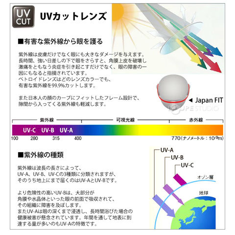 - SWANSサングラスはすべてのレンズが有害な紫外線を99.9%以上カットします。 長時間強い日差しの下で眼をさらすと、眼の障害の一因にもなると指摘されている紫外線。SWANSペトロイドレンズは、どのレンズカラーでも紫外線を99.9%以上カットし、日本人の顔のカーヴにフィットしたフレーム設計で隙間から入ってくる紫外線も軽減します。