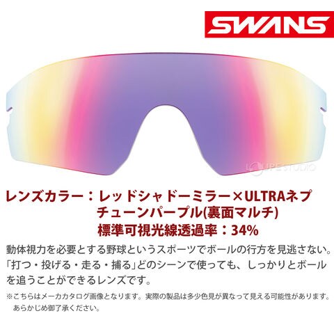 光の量をカットし、外から眼が見えにくいミラーレンズ。ボールの視認性を高める野球に特化したULTRAネプチューンパープルレンズに、 明るさを損なうことなく太陽光をフィルタリングするシャドーミラーをプラスしたレンズカラーです。さらに裏面に反射防止のマルチコートを施すことでレンズへの映り込みを抑えた機能性レンズです。
