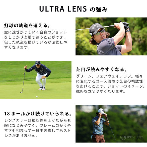 スポーツ用モデルと同じフレーム素材を使用することで、一般的なファッションサングラスとは違う軽さ・フィット感を実現。ゴルフ用、フィッシング用、ドライビング用の各ULTRA LENS搭載モデルを展開。