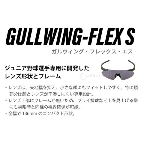 新製品『GULLWING FLEX-S』は、白いボールの視認性を高める効果を持つ『ULTRA LENS For BALLSPORTS』を搭載。 「打・投・走・捕」すべての動きでボールを追いやすく、プレーパフォーマンスの向上に貢献します。また、産業安全用保護めがねにも採用される耐衝撃性に優れた山本光学独自のポリカーボネート製『ペトロイドレンズ』が、紫外線を99.9%以上カットし、ボールの直撃などからも眼を護ります。さらに、顔幅に合わせて調整できるFLEXテンプルや調整機能付きノーズパッドが個人差が大きいジュニア選手の顔にサングラスをフィットさせ、プレー中のズレを防ぎ、高い防塵性で砂埃からも眼を護ります。
