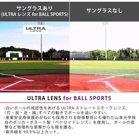 - ULTRA LENS for BALLSPORTSを搭載。ナチュラルな視界色でありながら白いボールの視認性を高める効果を持つレンズ。(可視光線透過率21%)