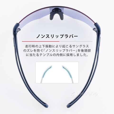 あえて剛性を適度に落とすことでしなやかに頭部を包み込む特?的な8の字構造のテンプルはそのままに、顔との密着度を高めて隙間からの光の侵入を抑えるレンズカーブ及びカット形状を新たに採用。そのメリットはマラソン、トレイルランなどランニング系アクティビティでいかんなく発揮される。