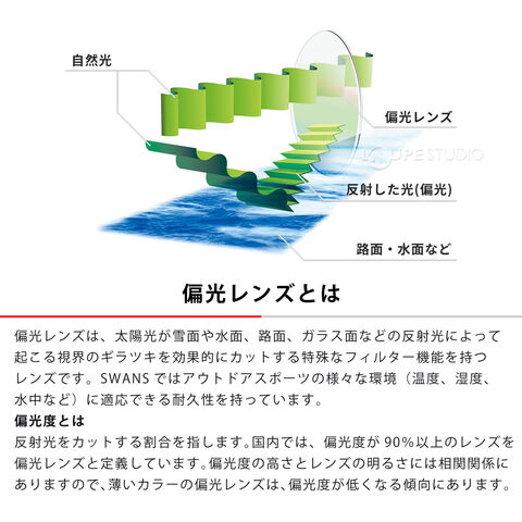 | 素材 | フレーム/ナイロン、レンズ/ポリカーボネート ※製品に付属しておりますタグには家庭用品品質表示法に則り、フレーム/プラスチック、レンズ/プラスチックと表示しています。 |