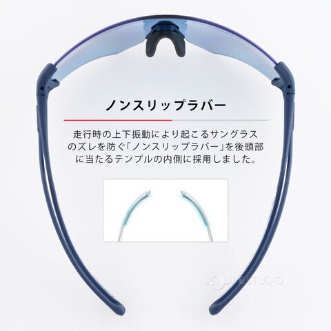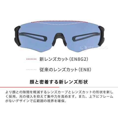 あえて剛性を適度に落とすことでしなやかに頭部を包み込む特徴的な8の字構造のテンプルはそのままに、顔との密着度を高めて隙間からの光の侵入を抑えるレンズカーブ及びカット形状を新たに採用。そのメリットはマラソン、トレイルランなどランニング系アクティビティでいかんなく発揮される。